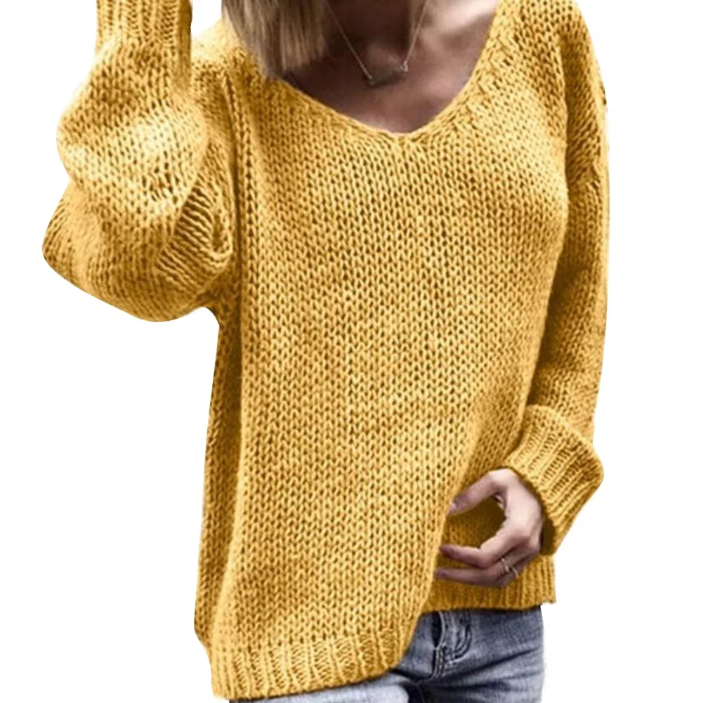2025 Casual Women Loose Solid Color Knitted Sweater V Neck Long Sleeve Top Women's Clothing свитера женские pull femme
