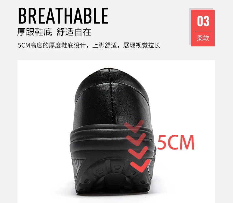 2026 Women's Shoes Spring Genuine Leather Soft Outsole Work Shoes Female Black Swing Woman Plus Size Wedges Single
