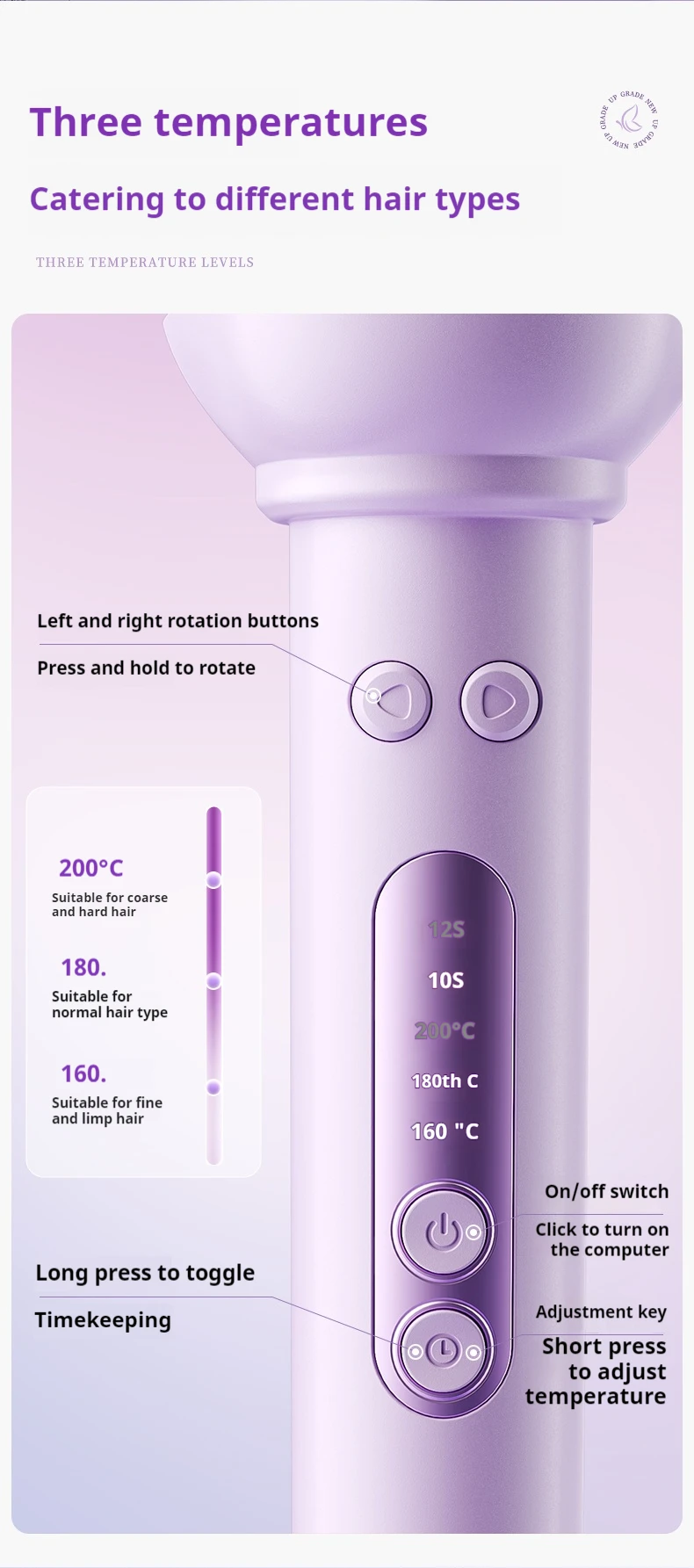 200°C: For thick, coarse, or hard-to-curl hair