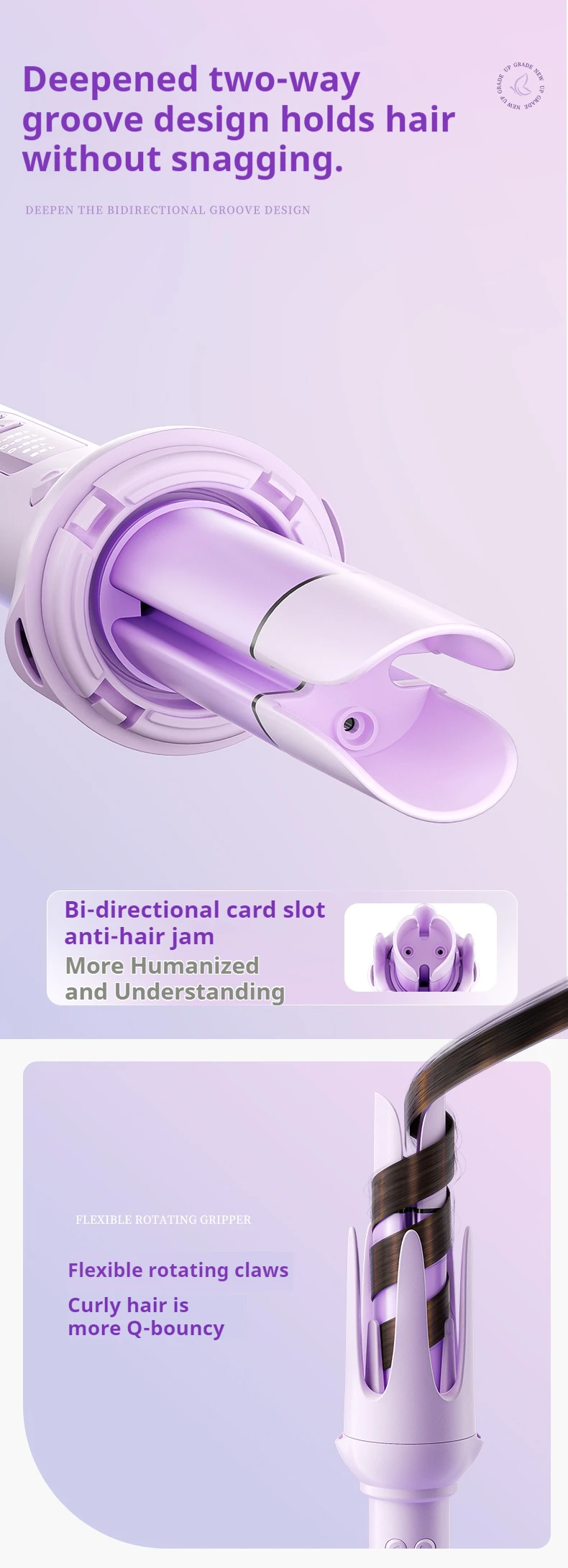 Flexible rotating claws ensure smooth, consistent curls every time